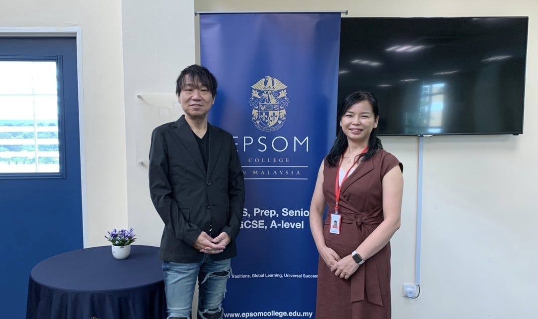 2020年2月、エプソムカレッジ・マレーシアにて、武井信也塾長と筆者
