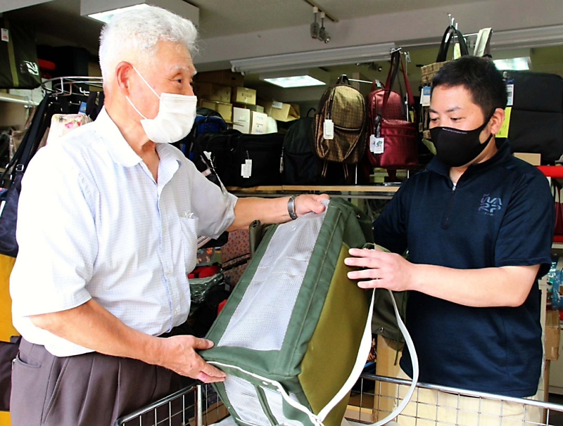 長野市の「きのこ衛生指導員」で調理師の下田隆さん(47)=鶴賀=と、同市栗田のかばん専門店「ヤナシン・アイ」店主の柳沢伸美さん(85)が、キノコ採り専用のリュックサックを考案した。キノコ採りが趣味の下田さんが「持ち運び中に傷んでしまう」と親交のあった柳沢さんに相談し、専用リュックサックを作ることで意気投合。アイデアを出し合って完成させた。「多くのキノコ愛好家へ届けたい」と予約販売を始めている。