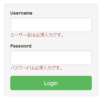 この状態で未入力のままボタンをクリックすると、以下のようにエラーが表示されます。