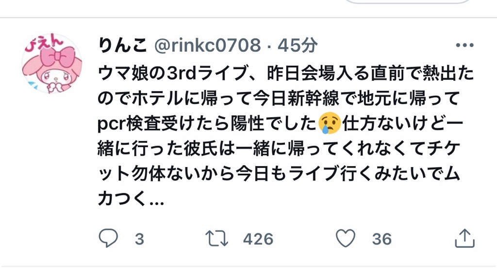 【朗報】ウマ娘のライブにコロナテロ起こしに行くオタク君現る 2021年08月29日 カテゴリ:🤠567プロ👾🐴デレステ2🐴 Comment(45) 懐かしい昨年のシンステを思い出しますねえ!発熱してるけど現地行くってやつ!そらコロナでもライブ行くでしょ一生に一回のイベントなんだから。コロナだけどライブを優先する俺武勇伝にもなるしな 晴れる屋にインフルエンザだけど海外グランプリ出てきたドャァして炎上したプロ選手いましたねえ 「🤠567プロ👾」カテゴリの最新記事 【悲報】桑山千雪さん、コロナ陽性 【悲報】アニサマはやるのにデレマスのライブだけ延期 【悲報】コロナクラスター化したSideMのPCR検査、魔女狩りだった 【SideM】信玄誠司役の増元拓也さんコロナ陽性。通算12人目 【悲報】ノクチルさん「アニサマ2021」を前日にドタキャン。リハーサルも不参加【アイドルマスター シャイニーカラーズ 出演中止のお知らせ】 橘ありす「文香さん、モデルナワクチン打ったですか!?(察し)」 【超悲報】シンデレラ10周年ツアー、愛知公演 開催延期が決定 【芸能】アイマス声優・南早紀 新型コロナ感染 1度は陰性も再度発熱で陽性に 現在は自宅療養 【悲報】シャニマスの七草にちかさんコロナ陽性 ワイシャニマス専マス豚、声優がホモマスのせいでコロナになってぶちギレ 「🐴デレステ2🐴」カテゴリの最新記事 【悲報】ウマ娘筆頭PのおうまP界隈また炎上してるらしい 【悲報】加藤純一、一週間配信休止・・・ 【ウマ娘】ナイスネイチャ「声優さんと結婚したいなら声優になるか漫画家になるか音響の道へ進みましょう そのほうが確率はあがります(*´ㅈ`*)笑」 【悲報】タクシー運転手さん、運転中にウマ娘をプレイして全国ニュースになる 【朗報】ゆっくりウマ娘さんウマ娘の不満を言う動画を出した結果、信者に屈して謝罪動画を出してしまう… ウマ娘バラマキと有償課金のハーフアニバーサリー開始 【悲報】ウマ娘、ハーフアニバーサリー当日に何も起こらない 【朗報】ウマ娘、超人気エイシンフラッシュちゃんで華麗にセルラン1位へ 【ウマ娘】★3エイシンフラッシュ/SSRナイスネイチャ・SRトーセンジョーダンがリーク通り登場予定! ウマ娘の実は彼氏がいそうな娘 11554PV 【悲報】撮り鉄、外国人のタコス屋のレビューに1をつけまくる 9194PV 【デレステ】限定水着ガチャ【藤原肇11高Viユニゾン/宮本フレデリカ9高Voユニゾン/イヴ・サンタクロース11中Daオルタネイト/SRスーサイドキャット前川みく】 8603PV 【悲報】夢見りあむさん、彼氏と同棲しているのがバレてしまう 8090PV 【悲報】人気Vtuberさん、APEX大会での結果が振るわず視聴者にボロクソに叩かれ心が壊れてしまう 7897PV 【悲報】 赤城みりあの人気声優さん、突如ツイートを全消ししてしまう・・・一体何があったのか・・・ 7861PV 【悲報】元Keyの原画家、樋上いたる「Keyに戻りたい…」 コメント コメント一覧 (45) 1. 本田未央最強! 2021年08月29日 13:34 こんなふうに晒されるくらいなら中止になったほうがましなんやろな 6 2. 本田未央最強! 2021年08月29日 13:34 ガイしか集まらんコンテンツ 18 3. 本田未央最強! 2021年08月29日 13:36 害悪やんけ 死ねよ 22 7. 本田未央最強! 2021年08月29日 13:37 >>3 滅ぶべきなのはデレの方や 3 24. 本田未央最強! 2021年08月29日 13:50 >>7 アチチ😡ですなぁ 17 4. 本田未央最強! 2021年08月29日 13:36 これを引用して公式に「対応しないといけないんじゃないですか?」ってリプしてるガイジもヤバい 18 29. 本田未央最強! 2021年08月29日 13:56 >>4 どんな対応せえ言うんやろな。調査会社でも使って身元割り出せってか? 3 5. 本田未央最強! 2021年08月29日 13:36 神戸って4thか?何かあったん? 0 6. 本田未央最強! 2021年08月29日 13:37 デレだったらそのまま会場に突撃してる 1 8. 本田未央最強! 2021年08月29日 13:39 >>6 ウマガイジさん無理やり矛先変えるの必死すぎんか😭 22 11. 本田未央最強! 2021年08月29日 13:41 >>8 デレの民度なら感染広めたことを自慢するぞ 2 15. 本田未央最強! 2021年08月29日 13:43 >>11 さすがにミリオンの民度には負けますよ 13 9. 本田未央最強! 2021年08月29日 13:39 言わんでいいことなんでいうんかね? まさか彼氏が悪いだけで自分は何も悪くないとでも言うのか? 悲劇のヒロインぶってんじゃねぇぞ 2 13. 本田未央最強! 2021年08月29日 13:42 >>9 いやこれは彼氏も帰るべきだろ良識有れば 10 21. 本田未央最強! 2021年08月29日 13:45 >>13 彼氏クラスター発生源疑惑😏 4 16. 本田未央最強! 2021年08月29日 13:43 >>9 一緒に行ってくれる相方がいない人の妬みやね 3 10. 本田未央最強! 2021年08月29日 13:40 なんでこんなんにチケ当たるんや、e+許せねぇ 6 12. 本田未央最強! 2021年08月29日 13:41 リプしてる人以外の登場人物酷すぎない? 2 23. 本田未央最強! 2021年08月29日 13:49 >>12 リプにも見るからにアレなやつが見切れて映ってるが 2 14. 本田未央最強! 2021年08月29日 13:42 現地行くならワクチンキメてからじゃなきゃ無理だわ もはやそれでも万全とは言い難いのに 1 17. 本田未央最強! 2021年08月29日 13:44 ウマ娘コロ