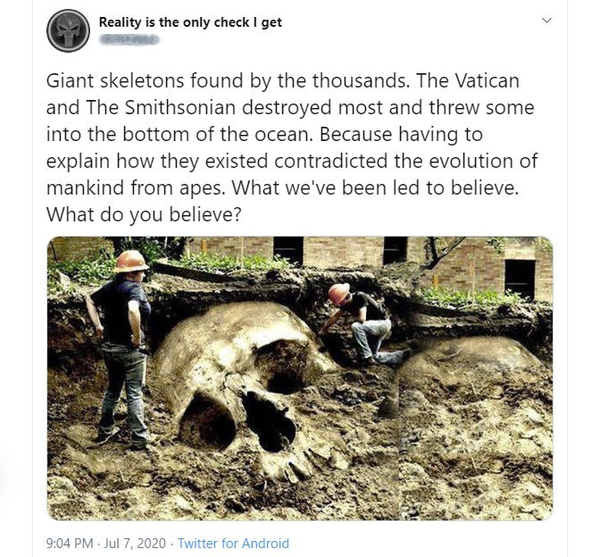 | People can go to great lengths to resist the idea that a story was just ... made up. This tweet (July 2020) treats an image from a 2013 Photoshop contest as evidence of a cover-up conducted by the Catholic Church and scientists. He gets very angry at the people pointing out that it’s a photoshop. This doesn’t bode well for the author’s state of mind, but it’s also unsurprising: it’s part-and-parcel of the human habit of expecting a kernel of reality even in material that’s totally invented. (Thanks to David S. Anderson for publicising this.) |