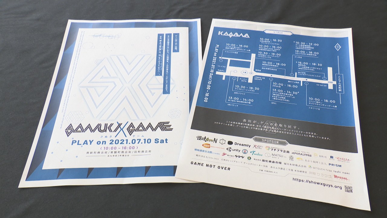 高松市の南部3町商店街で開かれた「Sanuki X Game」です。香川県内の学生やゲームクリエイター、商店街の店主らで作る団体が企画しました。