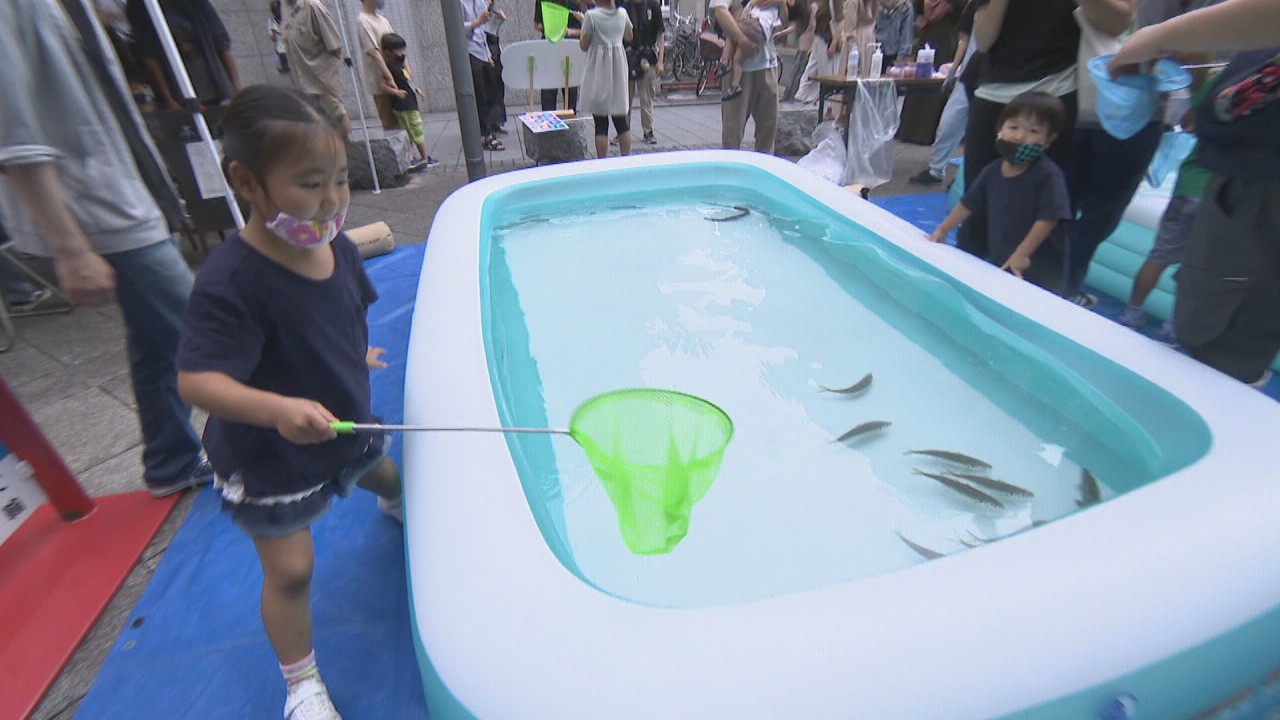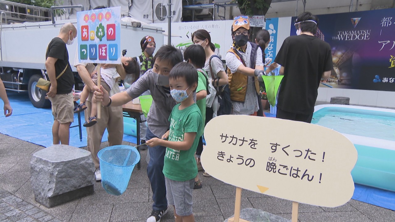 ターゲットは、いわゆる「ゲーム愛好家」だけに絞ってはいません。高松東魚市場の協力で、アジやハギ、ウナギなどを網ですくうイベントには大勢の親子連れが参加。