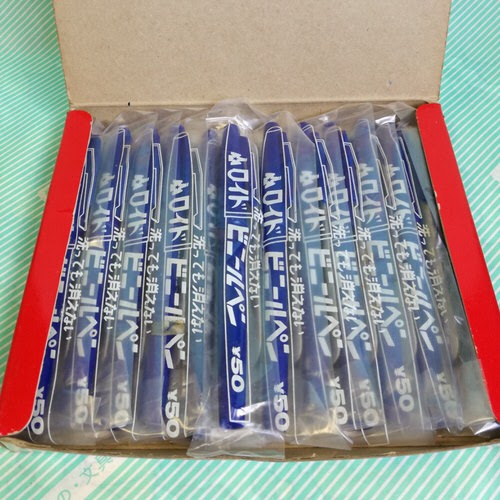 油性のペンで色は青のみとなります。外箱に入っておりきれいな状態です。