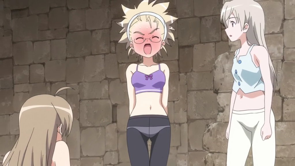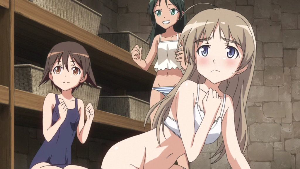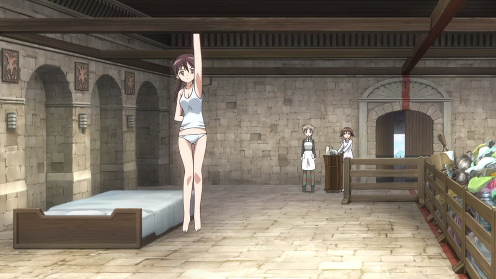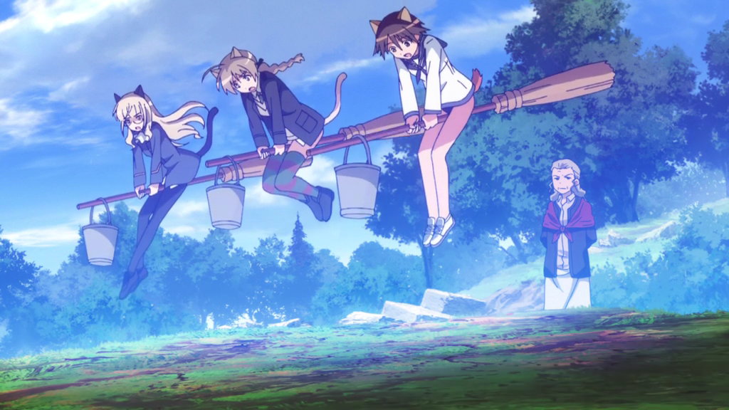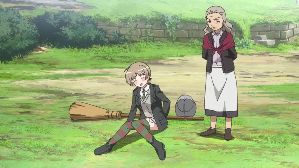 老魔女アンナ・フェラーラにシゴかれるリーネ、芳佳、ペリーヌ。