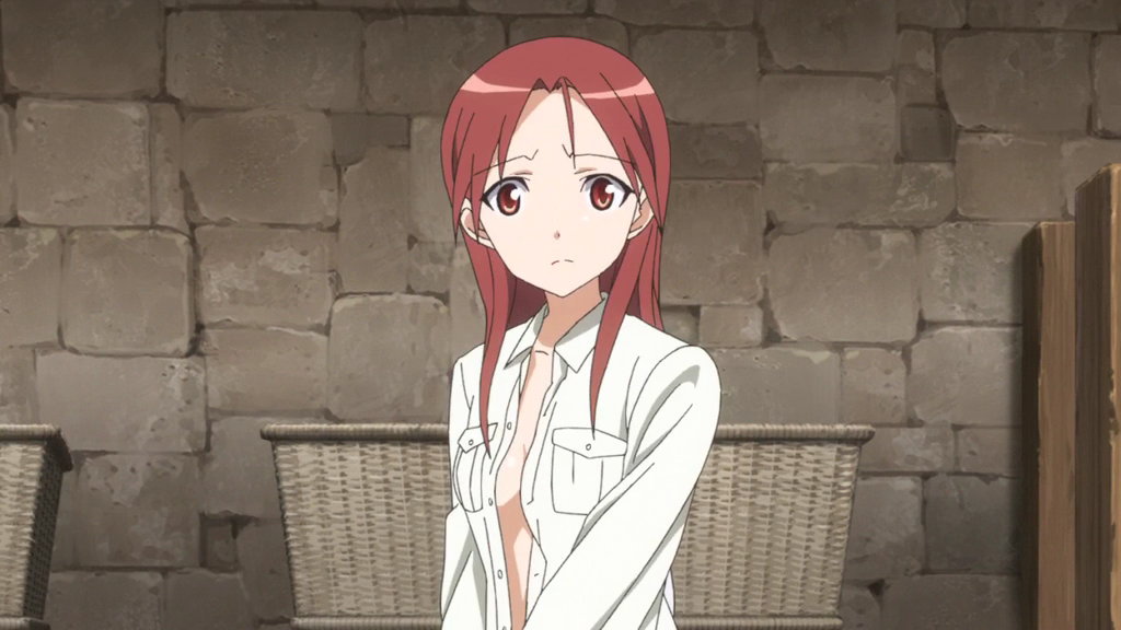 浴衣がはだけて胸の谷間が見えるミーナ(アイキャッチ画像)