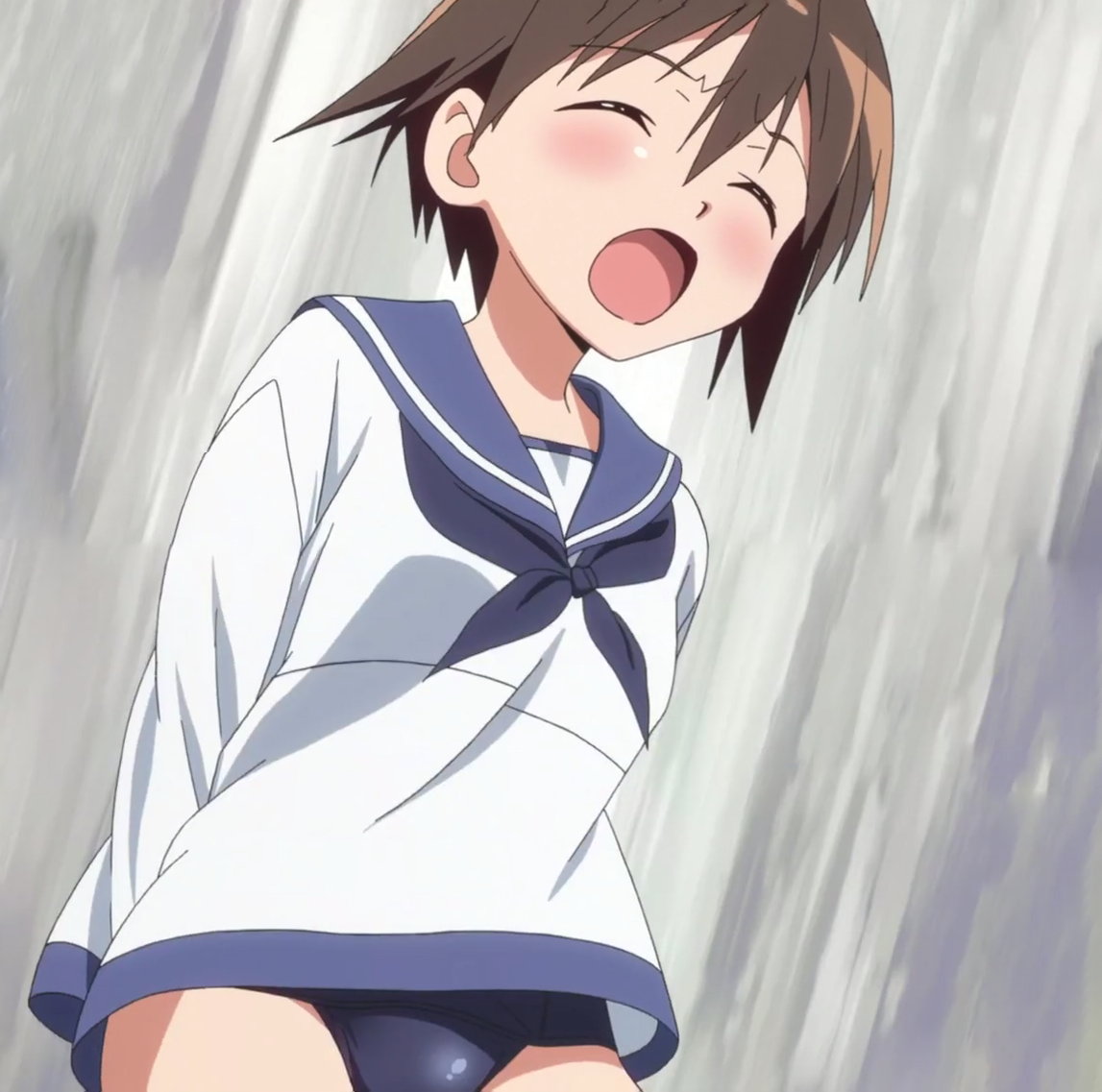 お尻丸出しになったところに水を掛けられるペリーヌ。