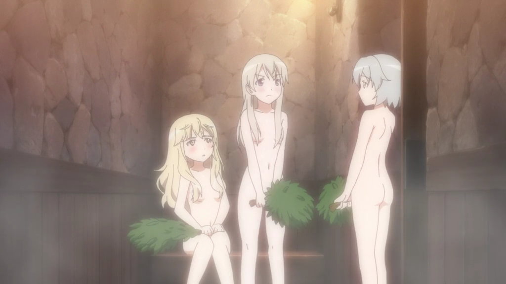 サウナに入浴中のペリーヌ、エイラ、サーニャ。