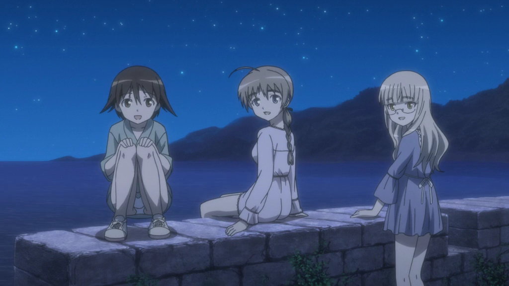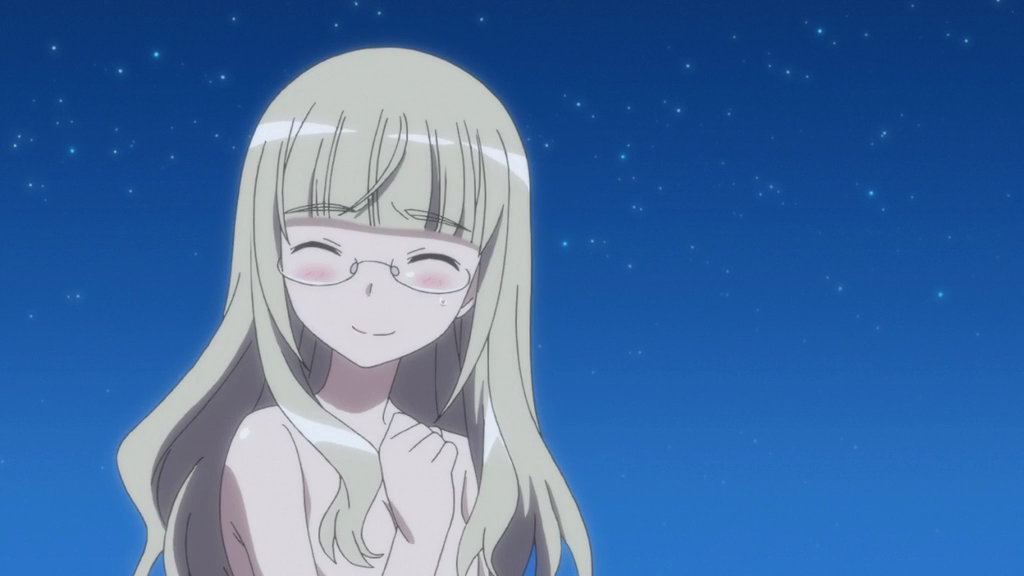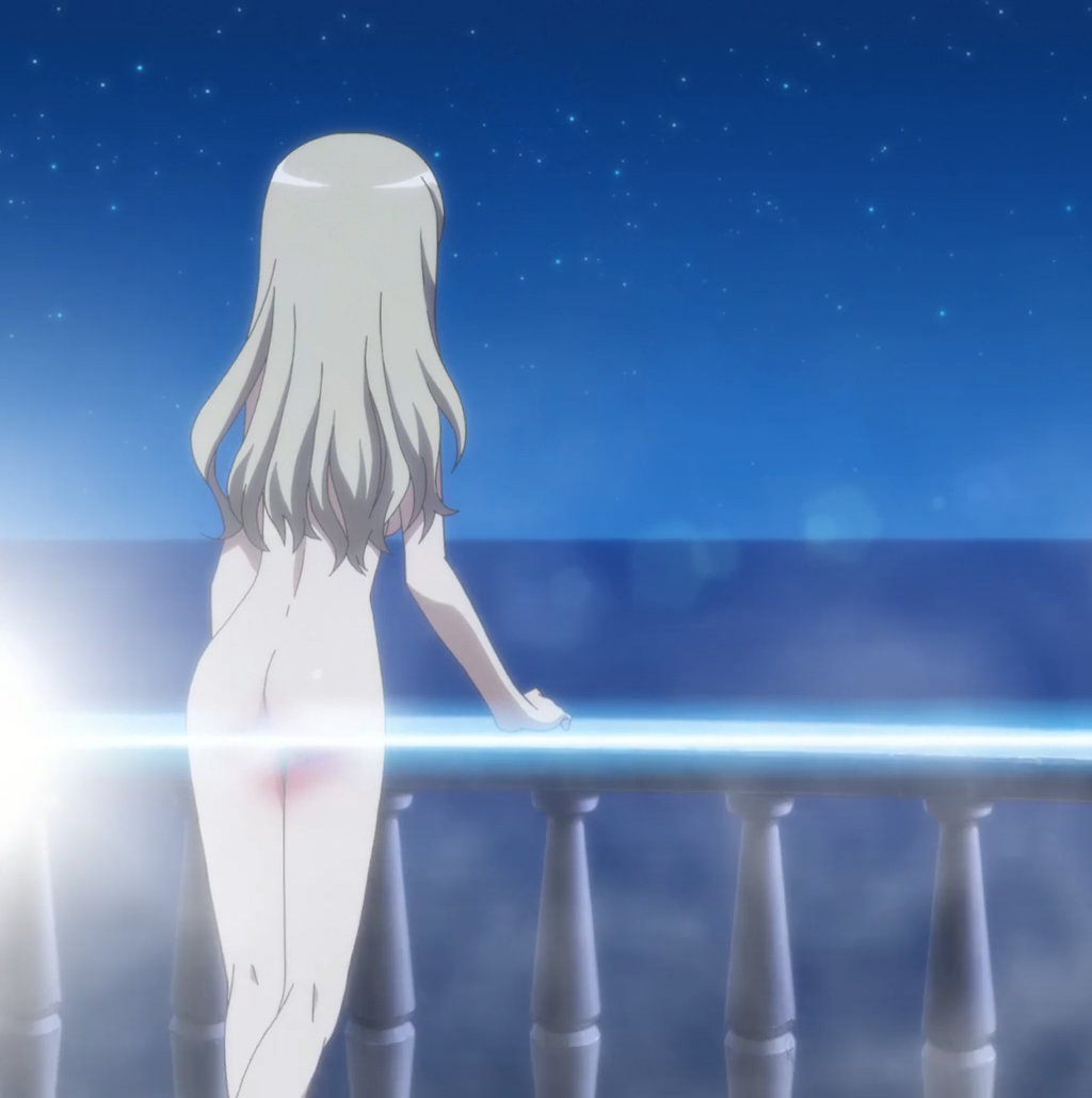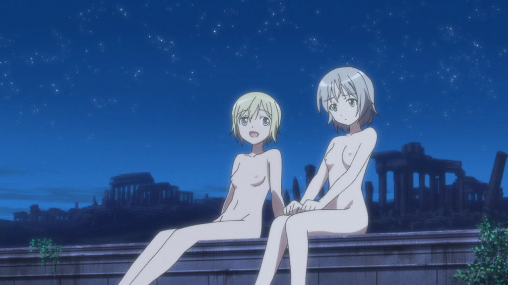夜空の下で会話する全裸のエーリカとサーニャ。
