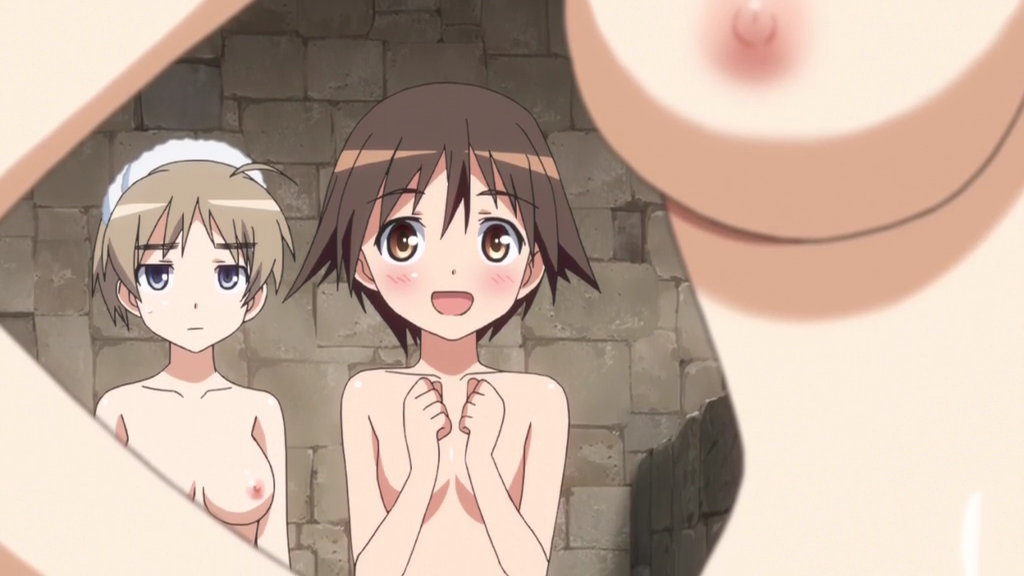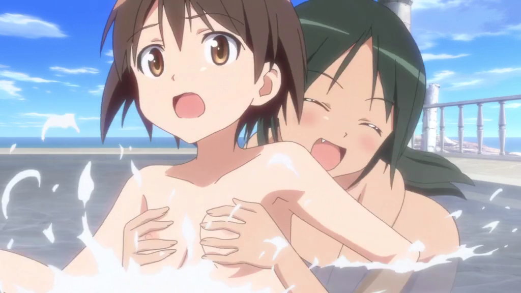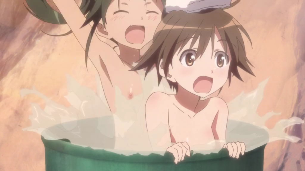 浴場で燥ぐルッキーニと芳佳。