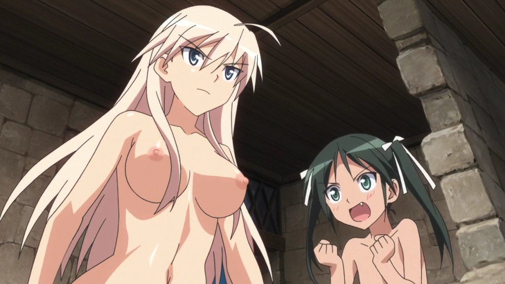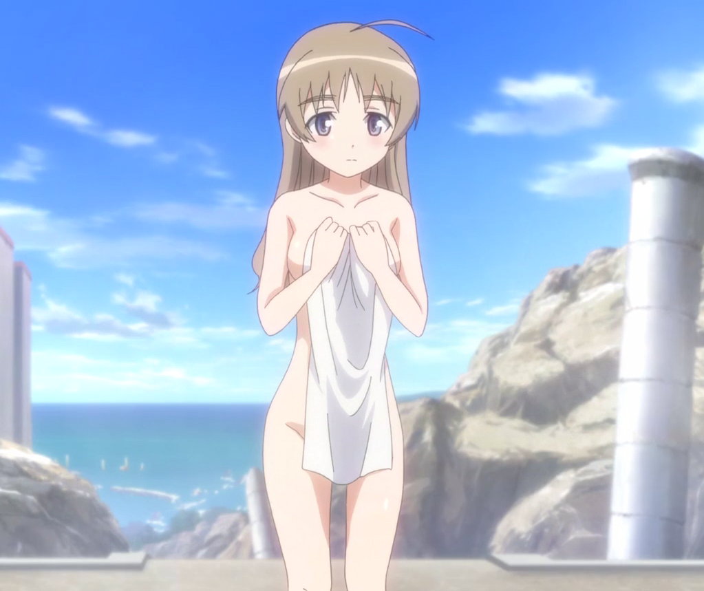 リーネのバスタオルを剥ぎ取るエイラ。