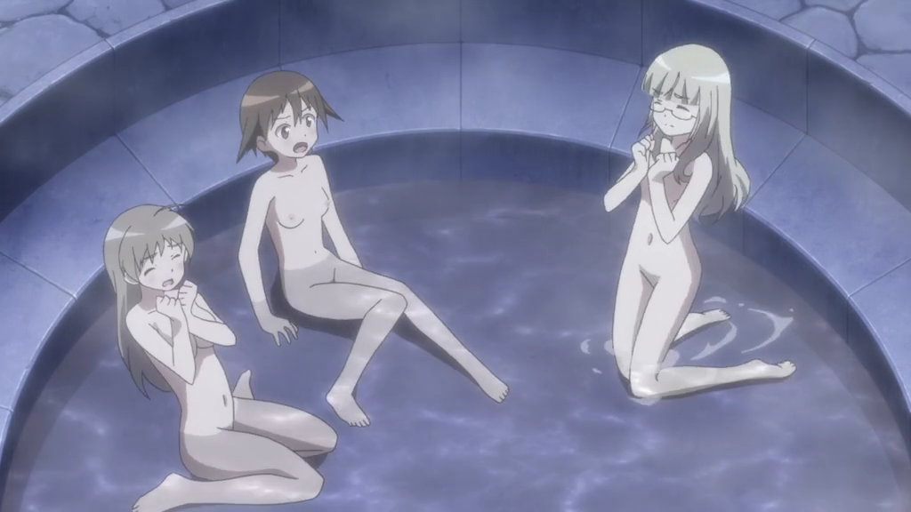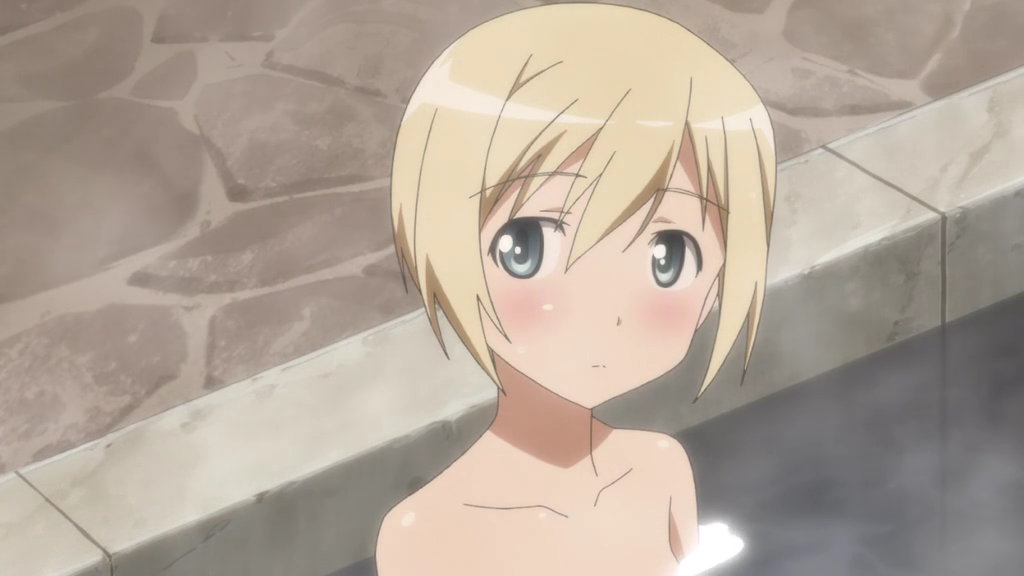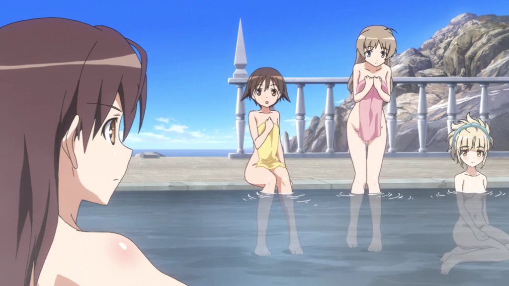 入浴中の芳佳、リーネ、ペリーヌ、トゥルーデ、エーリカ。