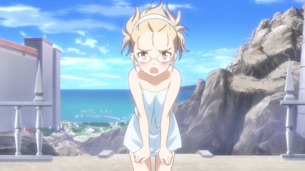 体をバスタオルで隠すリーネ。