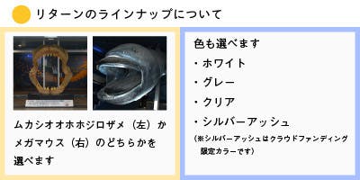 詳細は各リターンの説明欄にありますので、選択する前に必ずお読みください。また、リターン内容について質問があればCAMPFIREのメッセージ機能でご質問ください。