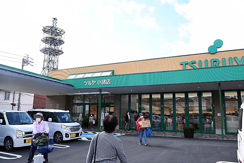 スーパー「ツルヤ」(小諸市)は14日、小諸市が市役所近くに8月開館した複合型中心拠点誘導施設「こもテラス」にツルヤ小諸店をオープンした。同社1号店の流れを継いで1965(昭和40)年に開店した旧小諸店は、建物の老朽化で2018年1月末に休業しており、約3年9カ月ぶりの再開となった。同店の開業で、こもテラスは全面オープンした。