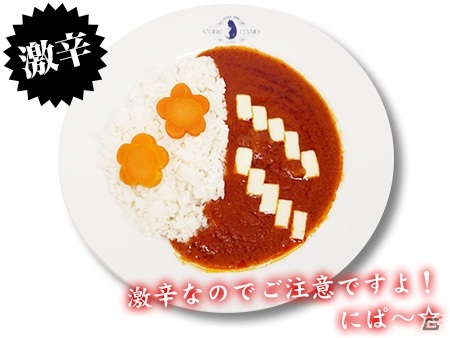 綿流しのお祭りで舞う、巫女服姿の梨花を表現した真っ赤なカレー。トッピングのチーズでクワについているおおぬさをイメージ。見た目の可愛らしさとは裏腹に、刺激的な辛さ。