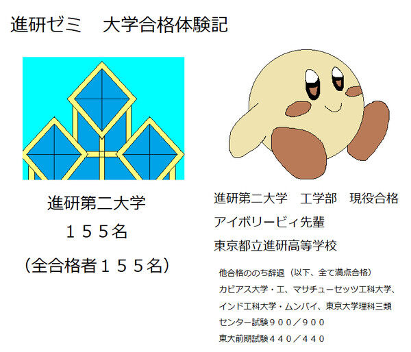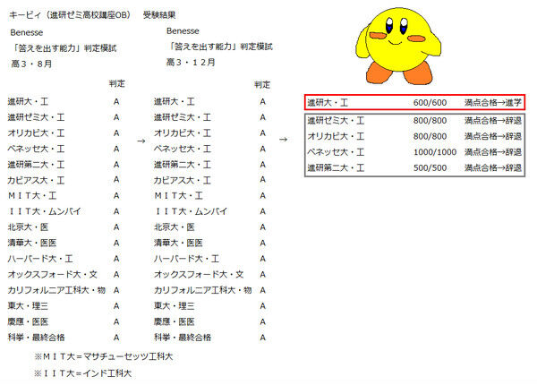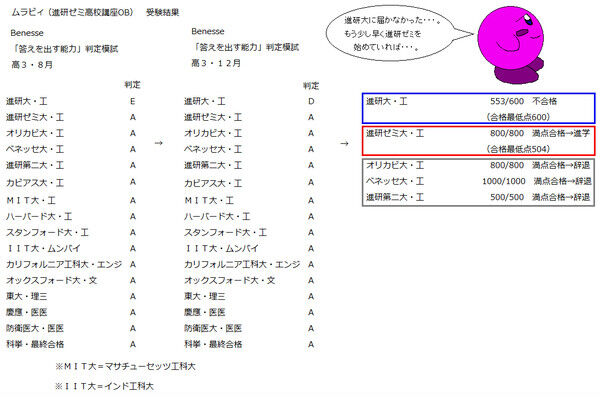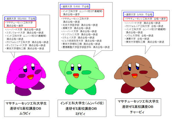 ※進研大学を不合格になったムラビィでさえ、他のマサチューセッツ工科大学やインド工科大学は滑り止めとして受験している。