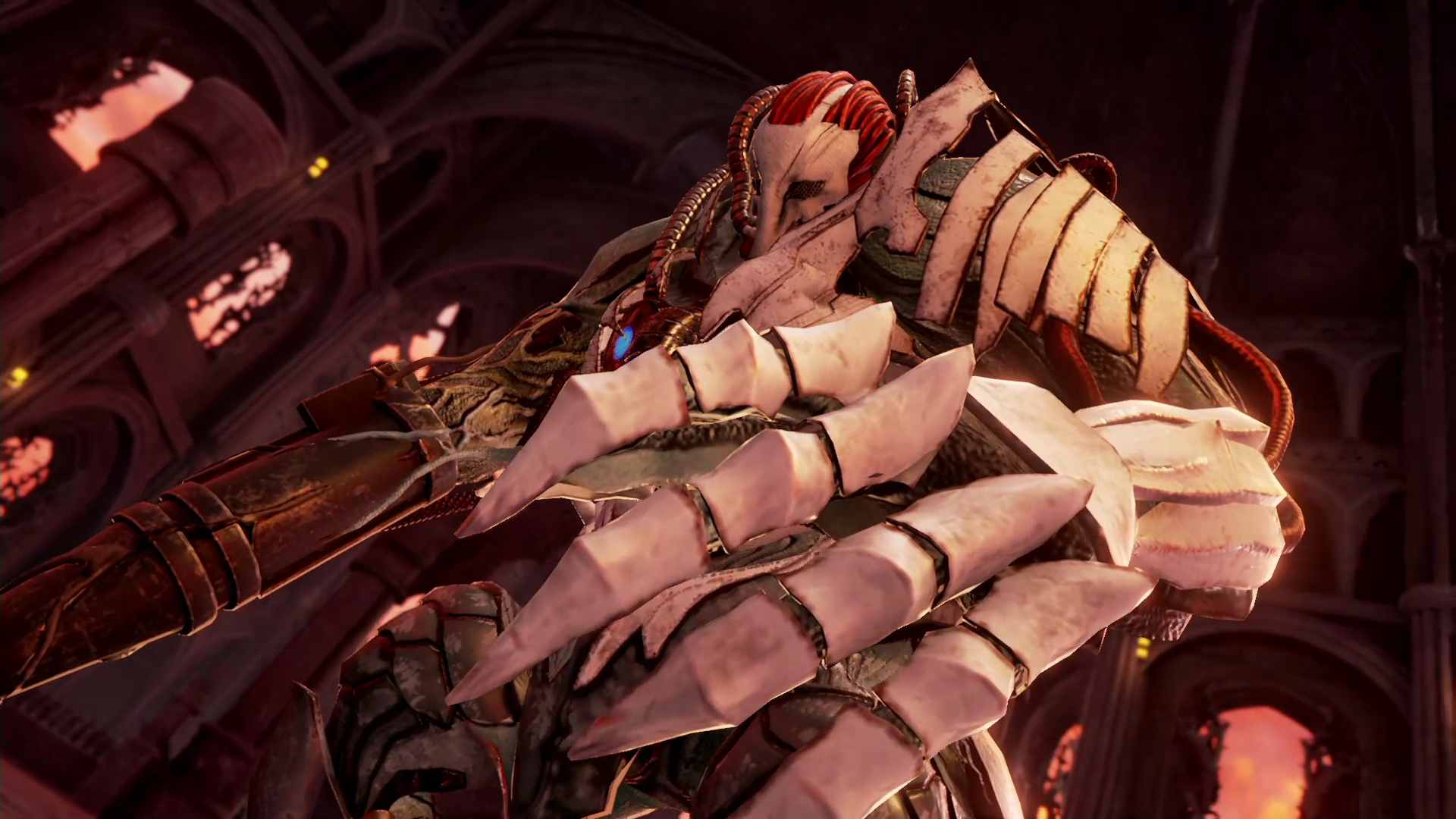 所以御堂就將神骸打入希爾伯體內,讓希爾伯失控無法維持紅霧,紅霧消失後出現的怪物,就是大崩毀時出現的...「荒神」,是的,就是噬神者系列的敵人「荒神」。(其實一開始我沒意識到,我以為只是製作組懶惰用一樣的怪物模組XD,不過網路上分析噬神者與噬血代碼應該是同一個世界觀)