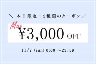 【本日限定!】Max ¥3,000 OFF クーポン開催