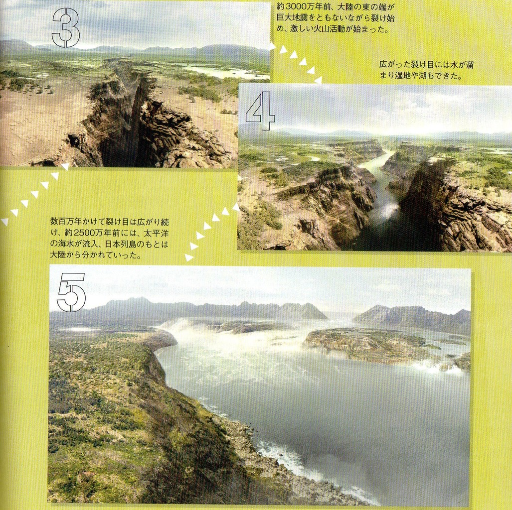 図2 大地の裂け目ができ、大陸と切り離される。[5]