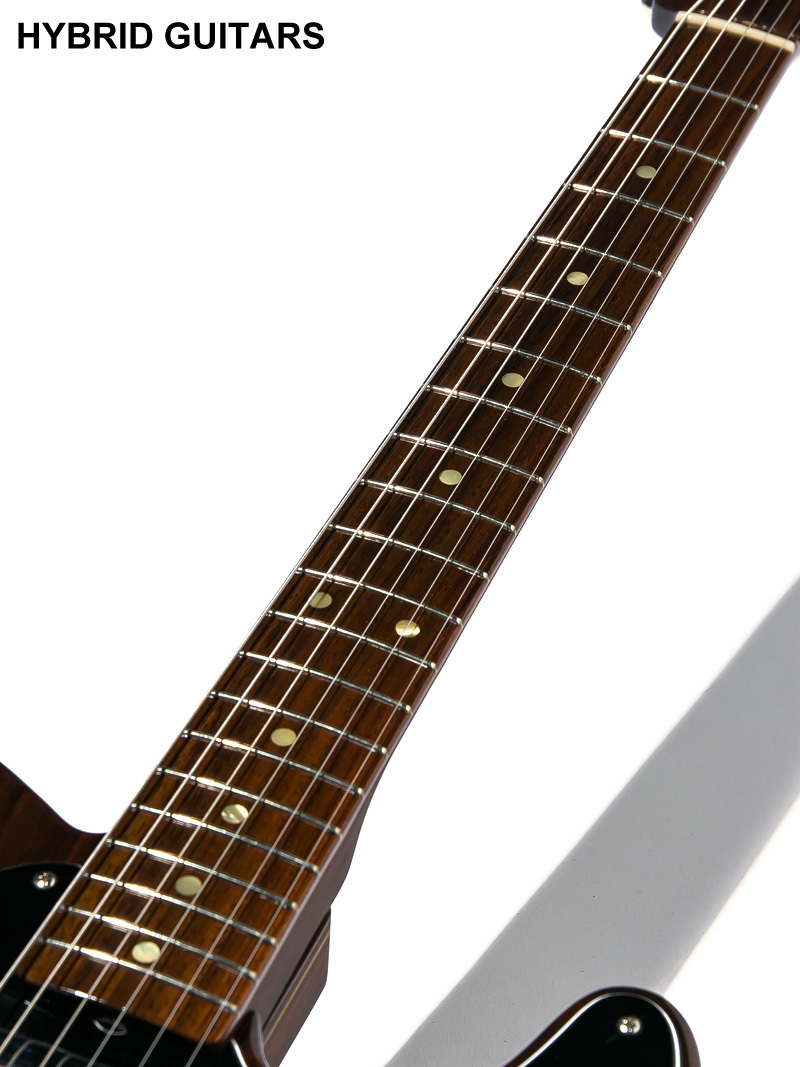 Fender Master Builder製やFender Custom Shop製、Fender Japanでも極少数生産されていたジョージハリスンのオールローズテレキャスターを彷彿とさせるテレキャスターです。メイプルをローズウッドで挟んだパンケーキ構造のボディーと指板もネックもすべてローズウッドで製作され、3プライのブラックピックガード、ピックアップはアメリカ・テキサス州にて100%ハンドメイドで作られているVanzandt OriginalのTelecasterピックアップを搭載しています。
