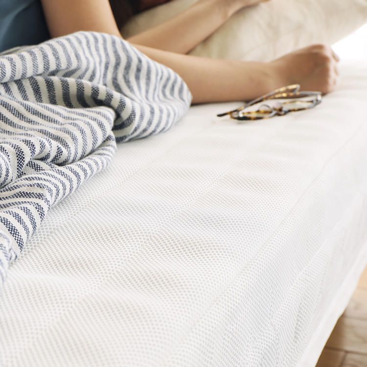 ナチュラルなインテリアと相性の良いホワイトカラー。マットレスに3Dメッシュ生地を使用することで、寝具っぽさを払拭し、ラフな印象に仕上げました。