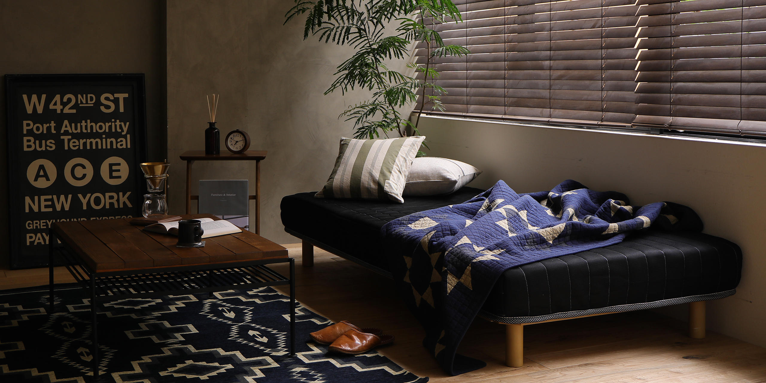 お部屋の印象をグッと引き締めるブラックカラー。高さを抑えたロータイプ仕様と相まって、圧迫感のないスッキリとした空間を演出します。