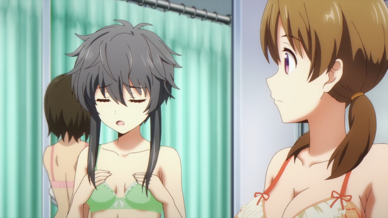 試着室にて下着を脱ぐ深雪。