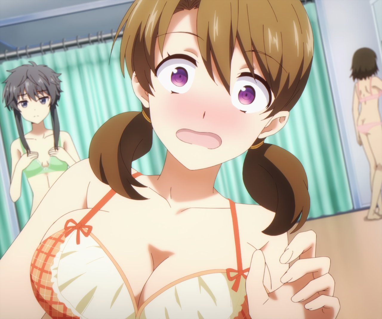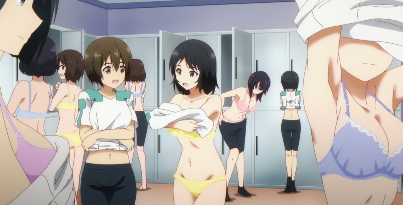 更衣室にて着替え中・下着姿の女子生徒たち。