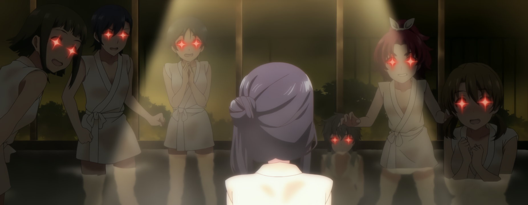 湯浴衣姿の深雪に興奮する女子たち。