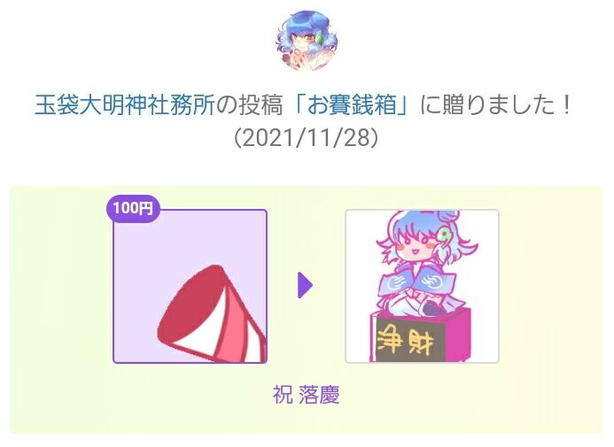 これを機会に今後は神だけじゃなくて他にもポチポチ支援してみようかな