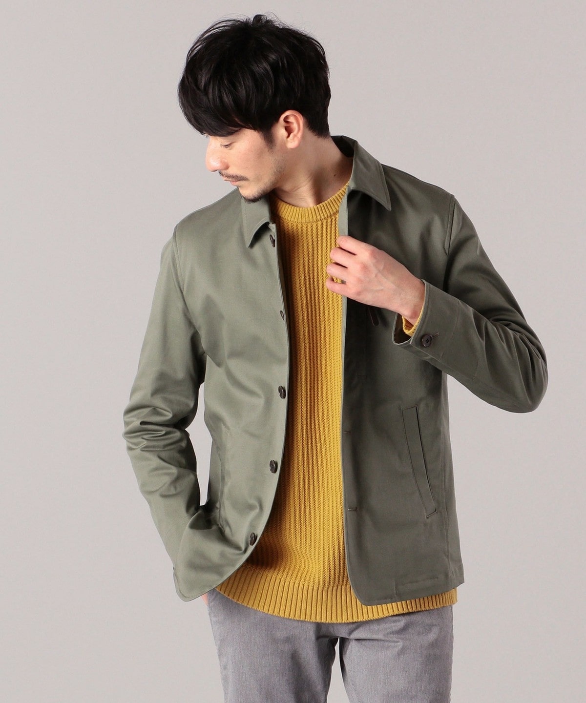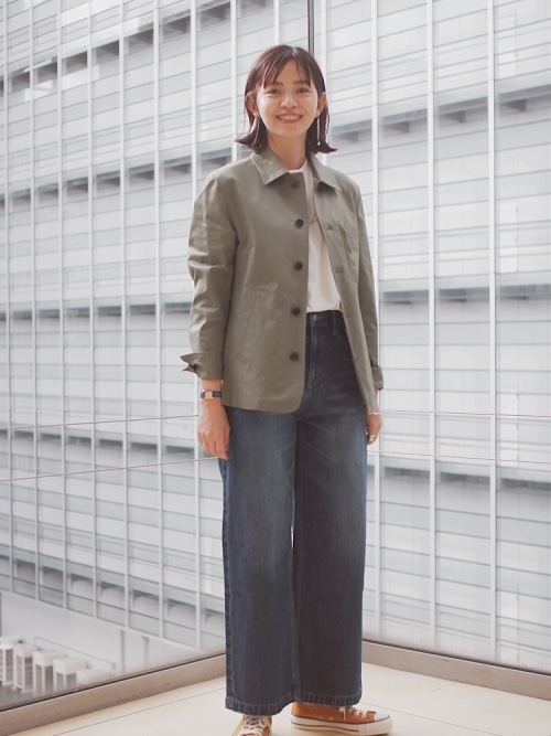 ハリのあるしっかりとしたツイルの素材感に加え、上品な着こなしのできるすっきりとしたキレイなデザインに仕上げています。