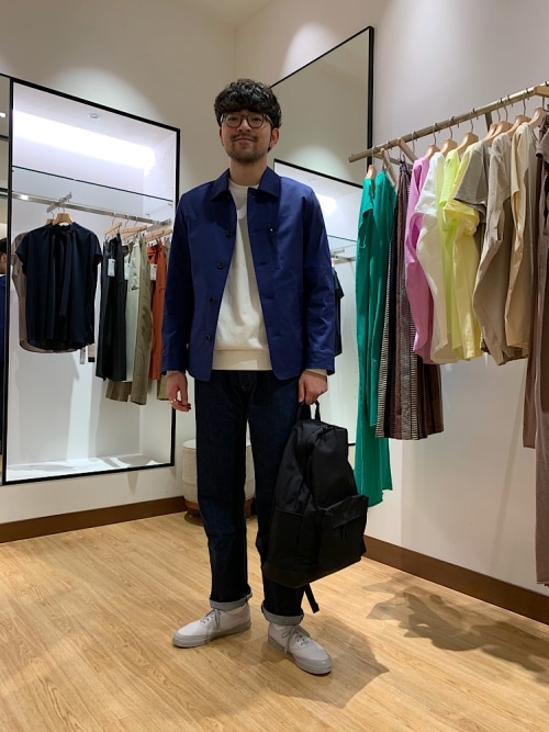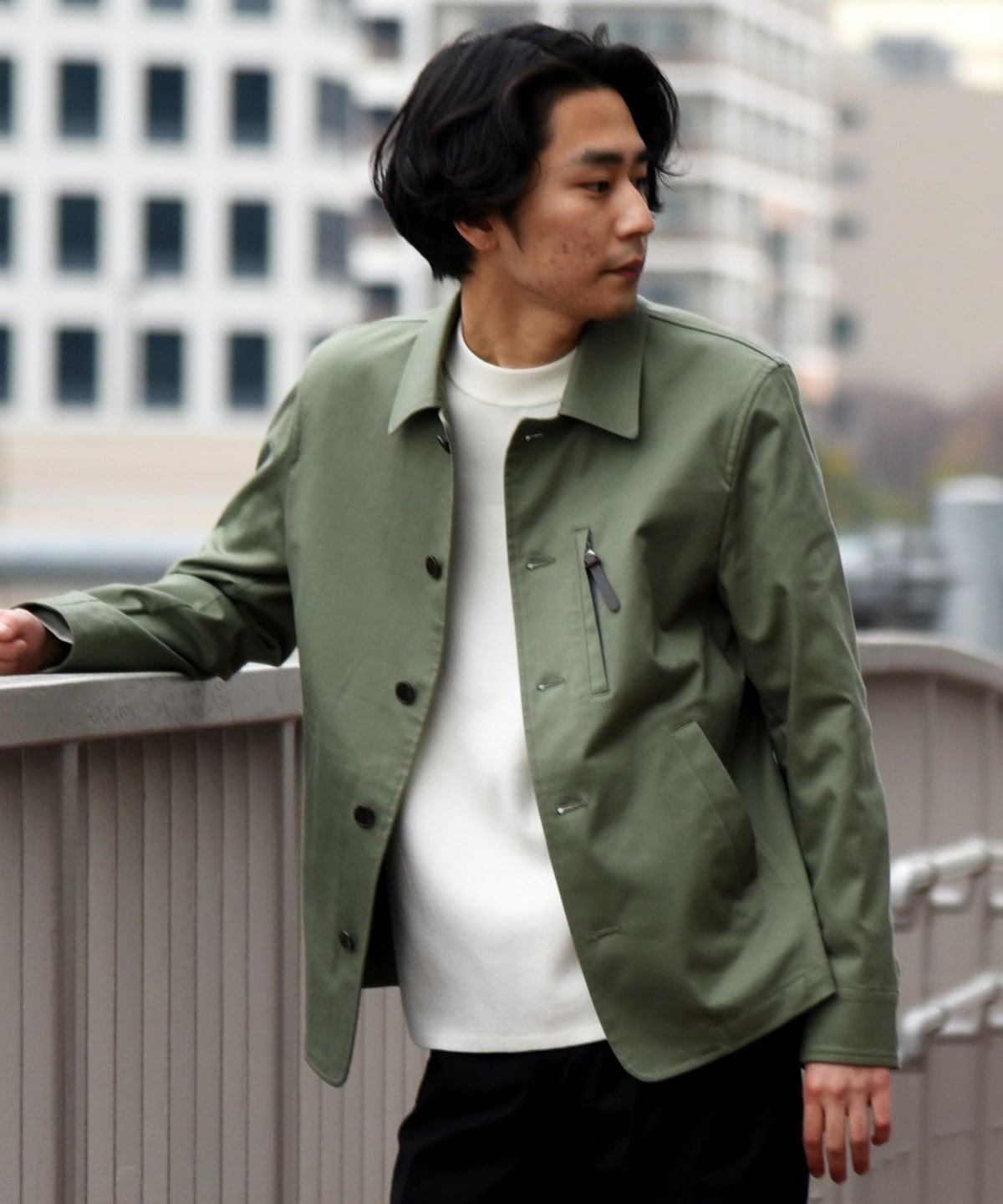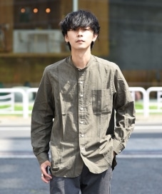 胸ポケットの引き手や台襟部分には、アクセントにフェイクレザーを用いる等、ミニマルなデザインながら細部のディテールまでこだわることで、上品で雰囲気のあるアイテムとなっております。