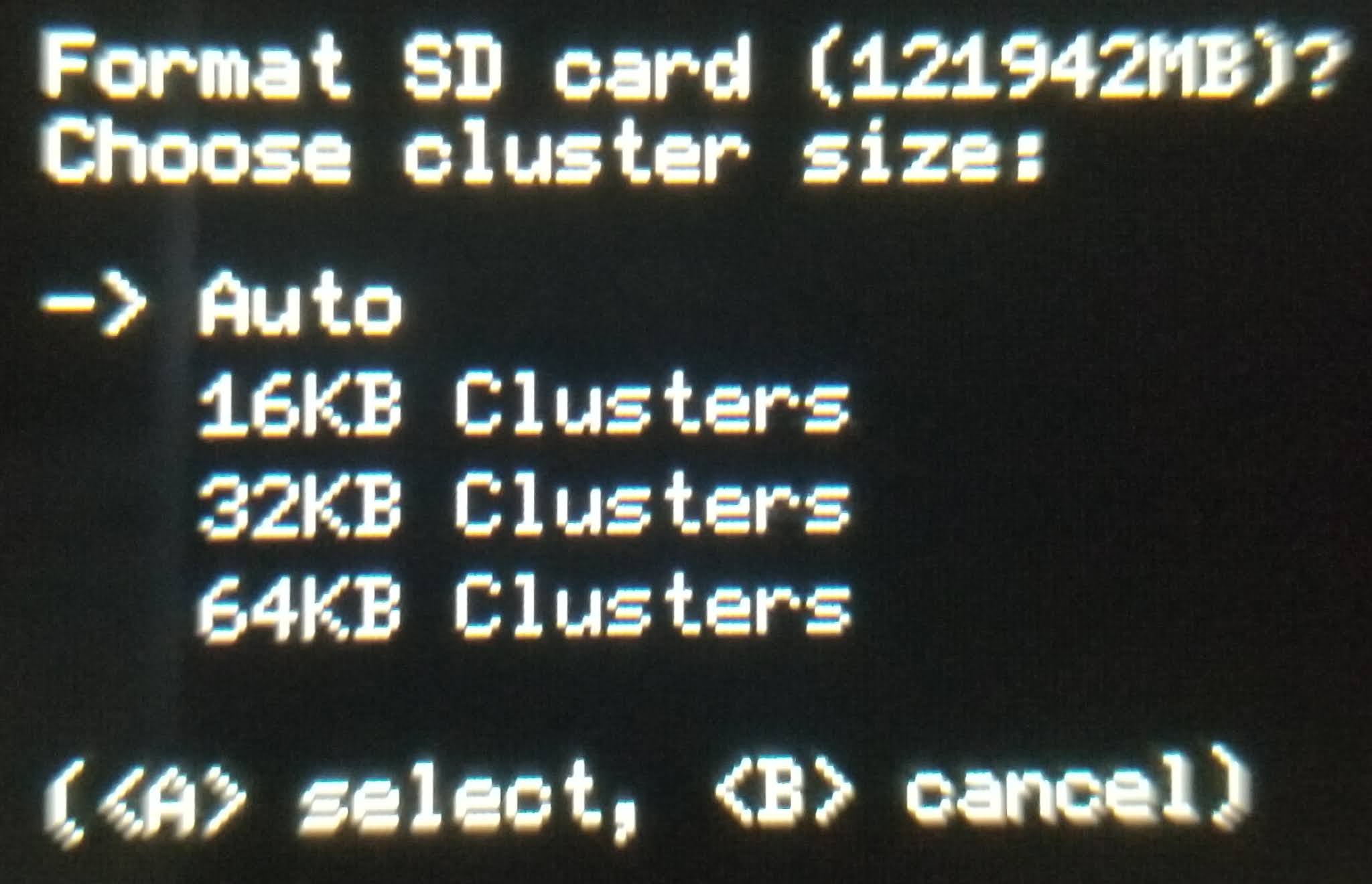 ボタンコンボが表示されるのでそれに従ってボタンを押すとフォーマットされる
