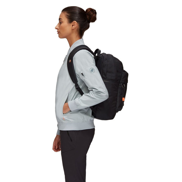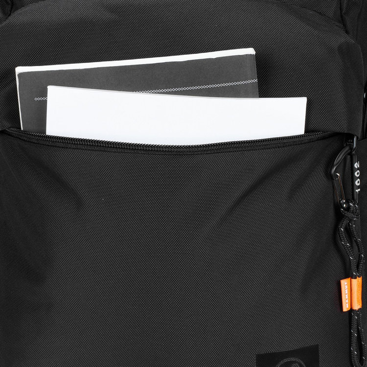 ミニカラビナやインナーライニングに施した山のプリントなど,クライミングや山との関連性を象徴するディテールが印象的なデイパック。バックには創業年である「1862」がエンボス加工され,自社のアプローチ「安全第一」を連想させるセーフティオレンジのディテールも施されています。内側には整理用コンパートメントとラップトップコンパートメントを内蔵。フロントにジップポケットを備え,さらにマムートのミニビナ付きです。ソフトなパッドが入ったショルダーストラップは長さ調節ができます。