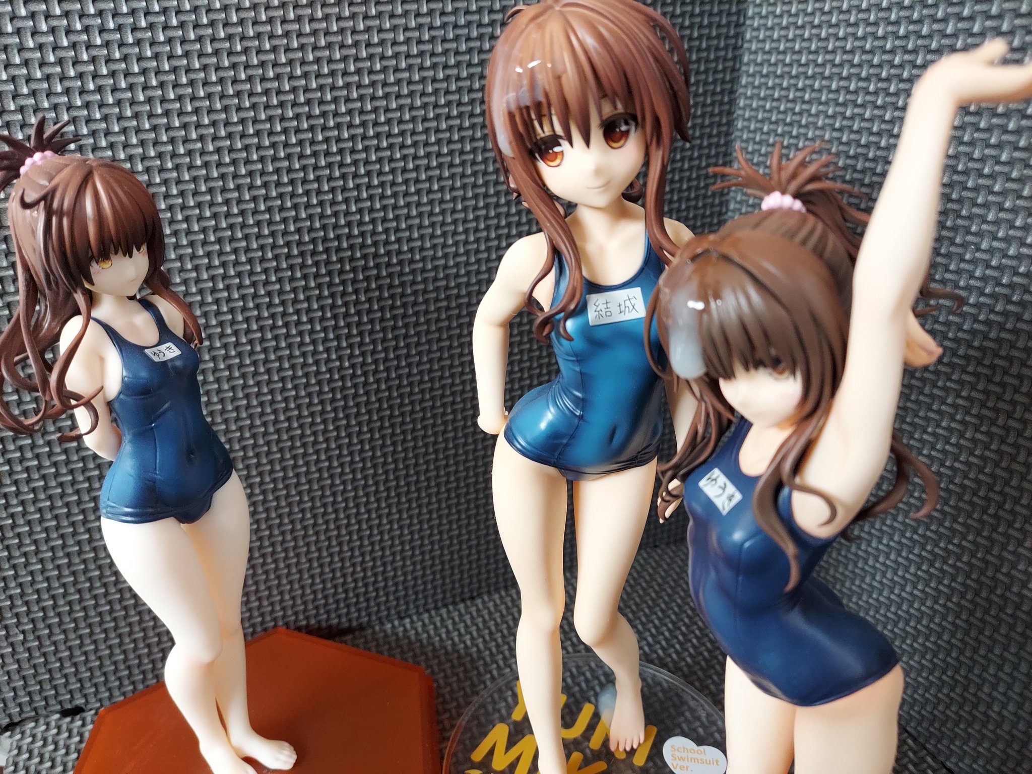 スク水美柑3体並べてぶっかけました! ひとりまったくかかってないですが…正直失敗かな。 ポプパレ美柑の台座がデカすぎて近くに並べられないんですよねー