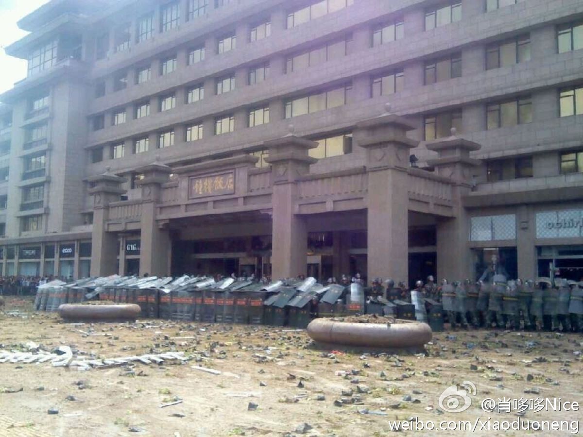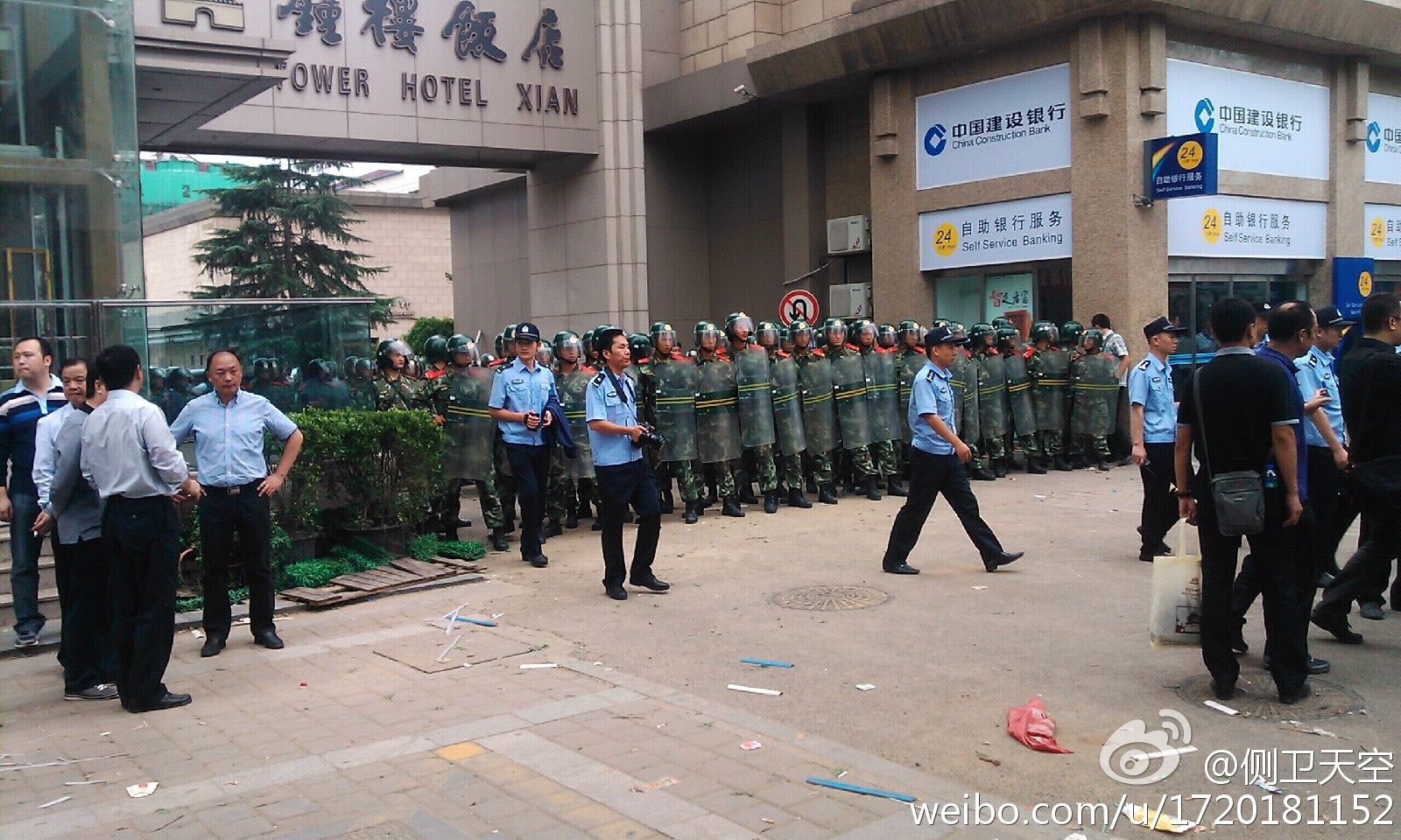 西安ベルタワーホテル デモ隊の襲撃から日本人客を守る武装警察