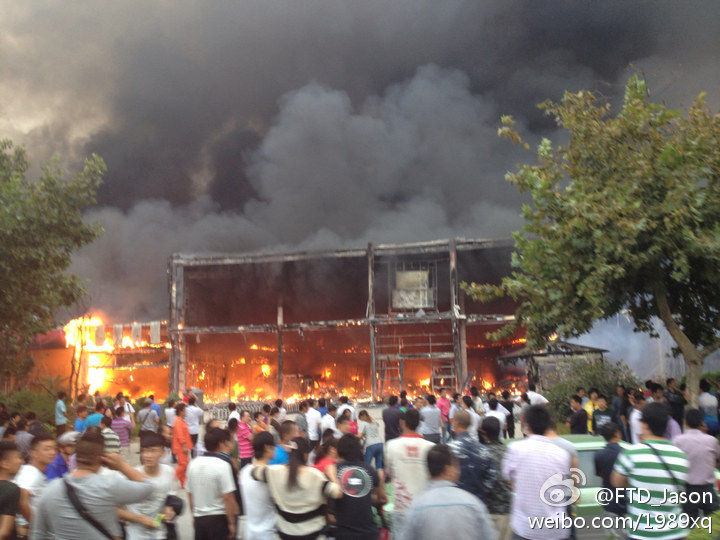 青島のミツミ電機の工場、放火されて大炎上