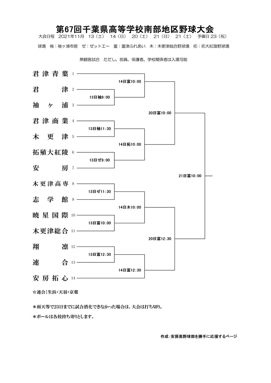 なお対戦表作成に当たっては”千葉高校野球情報局”様のツィートにお世話になりました。