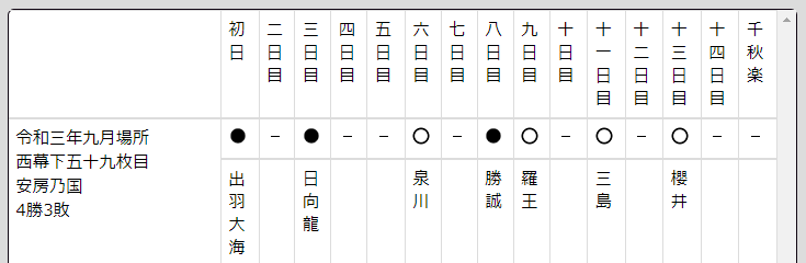 しかし、そこは巻き返しに強い安房乃国だけに勝ち越しで初の幕下の土俵を締めくくりました。上を見ればまだまだ道のりは険しいけど、これで六場所連続の勝ち越しは立派な成績。場所中毎日取り組みがあるのも、そう遠くないかもしれません。その日になれば、もう管理人は記録だけ。テレビが取り組みを伝えてくれるでしょう。