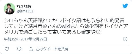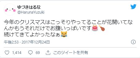 他にも、結月春菜さんが2017年12月に意味深なTwitterをしていることも怪しいです。