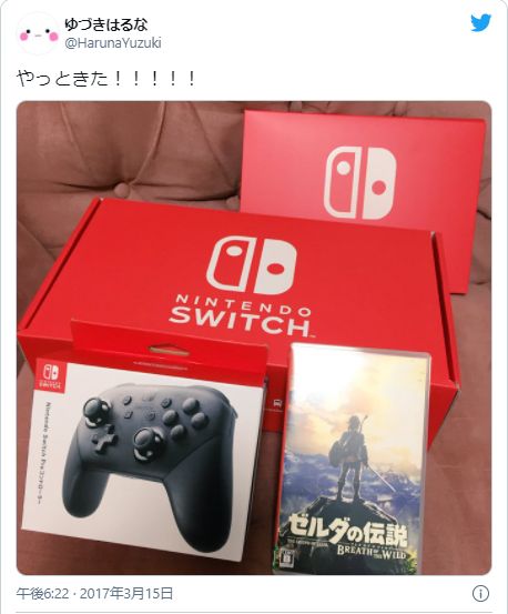 ゼルダの伝説をする際にも届いたとTwitterしていましたが、届いたのが待ち遠しかったみたいで嬉しそうなのが伝わってきますよね。