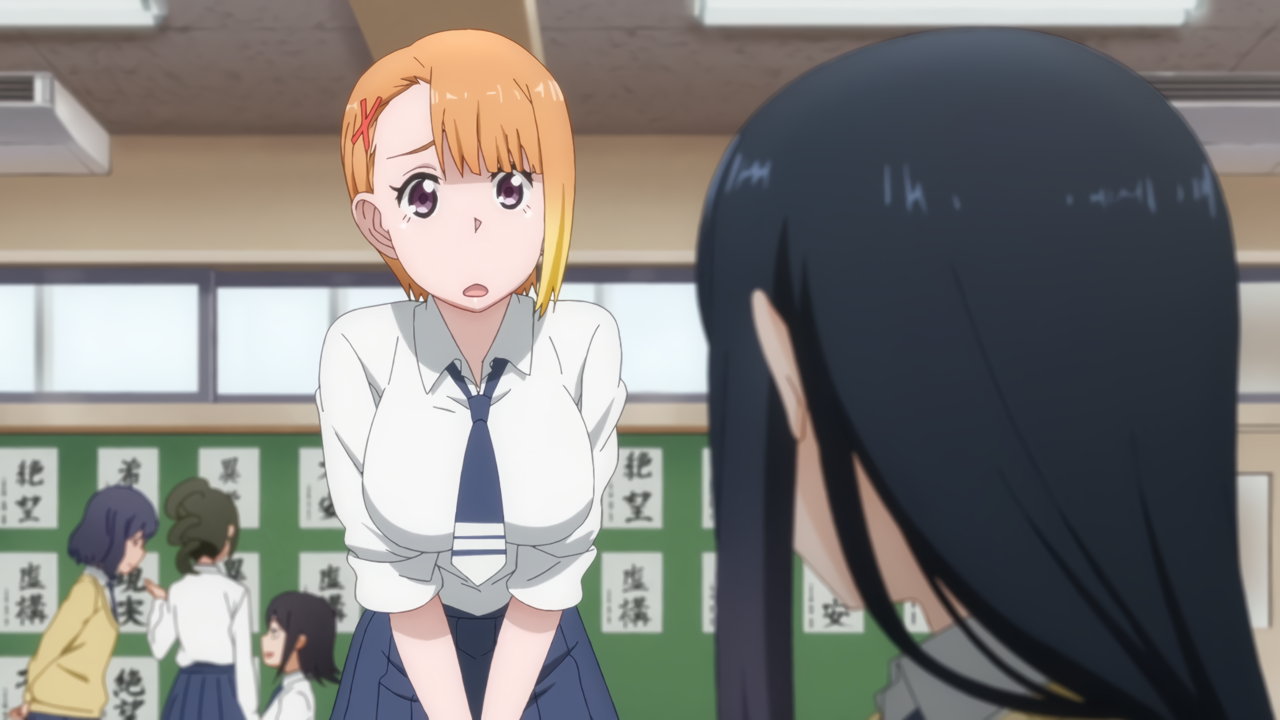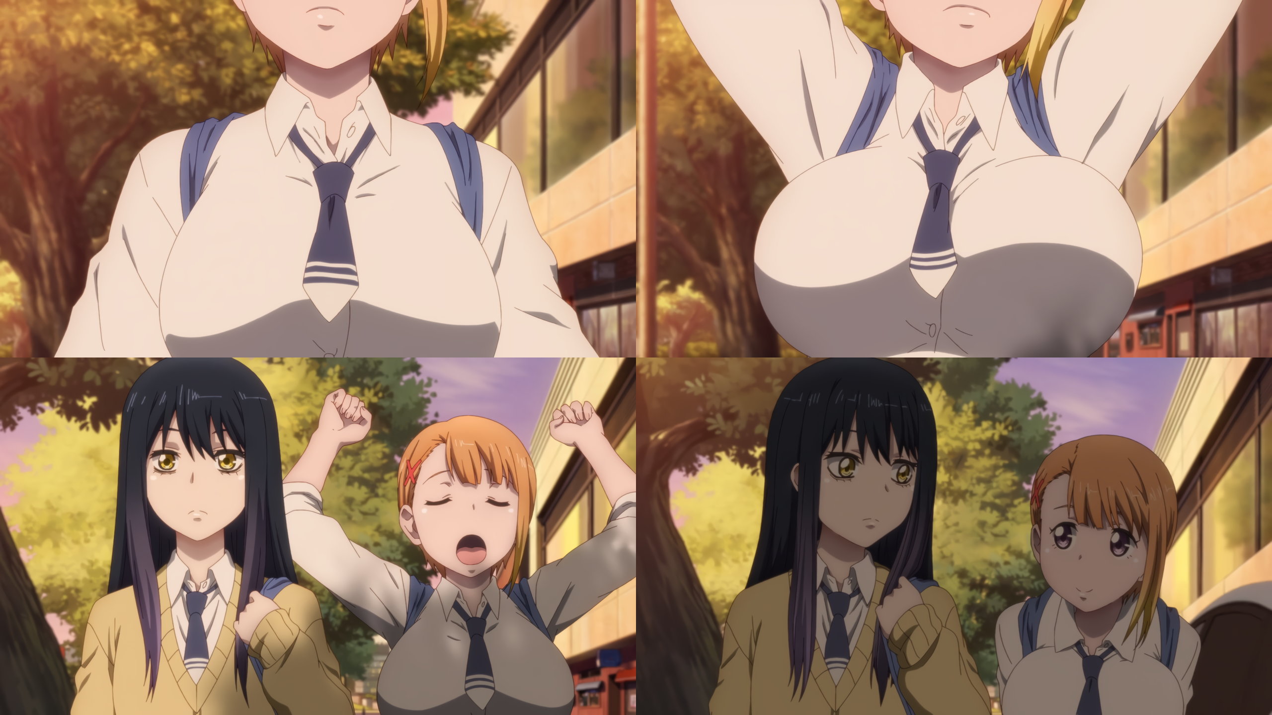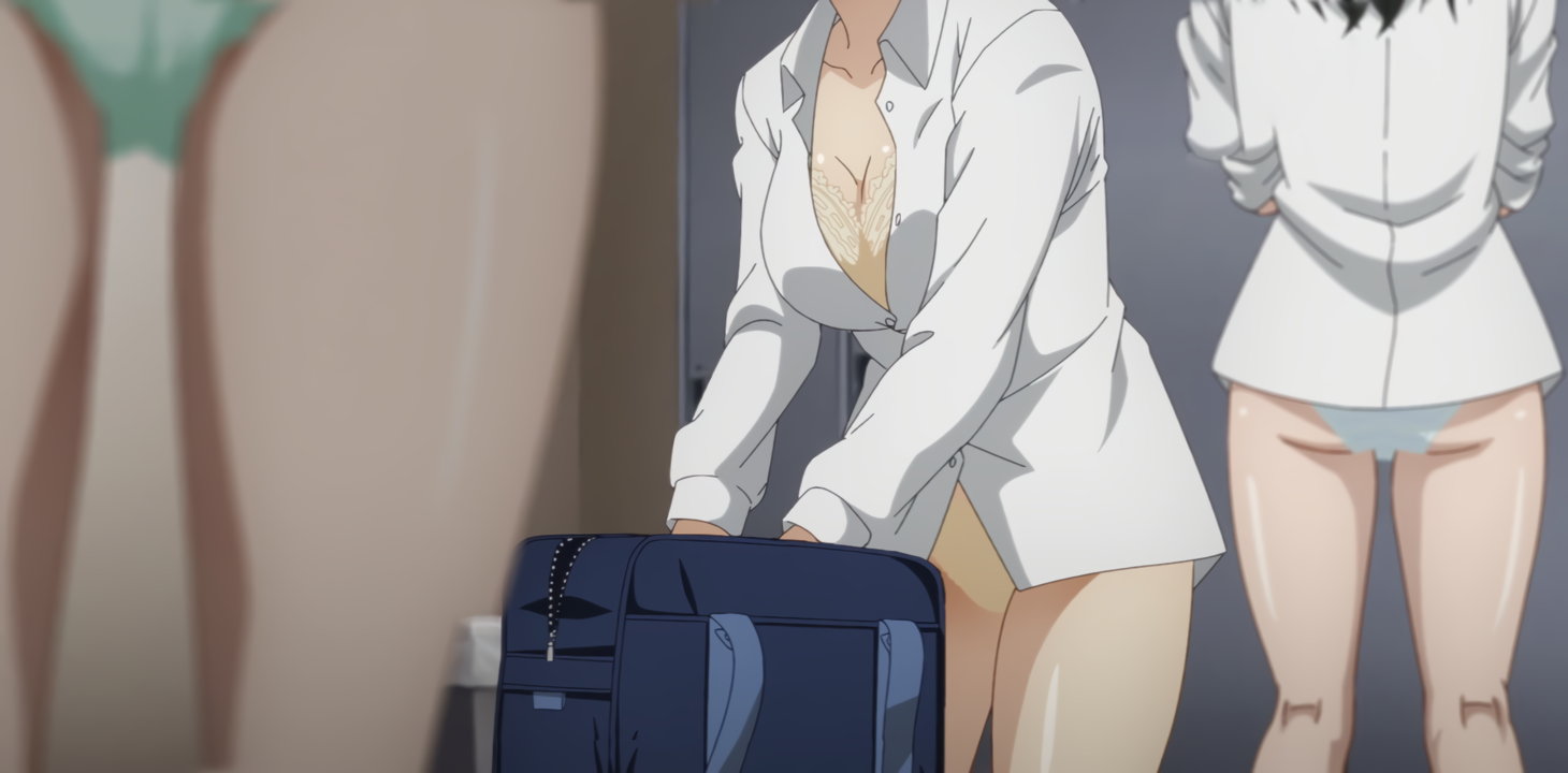 巨乳を見せながら欠伸するハナ。