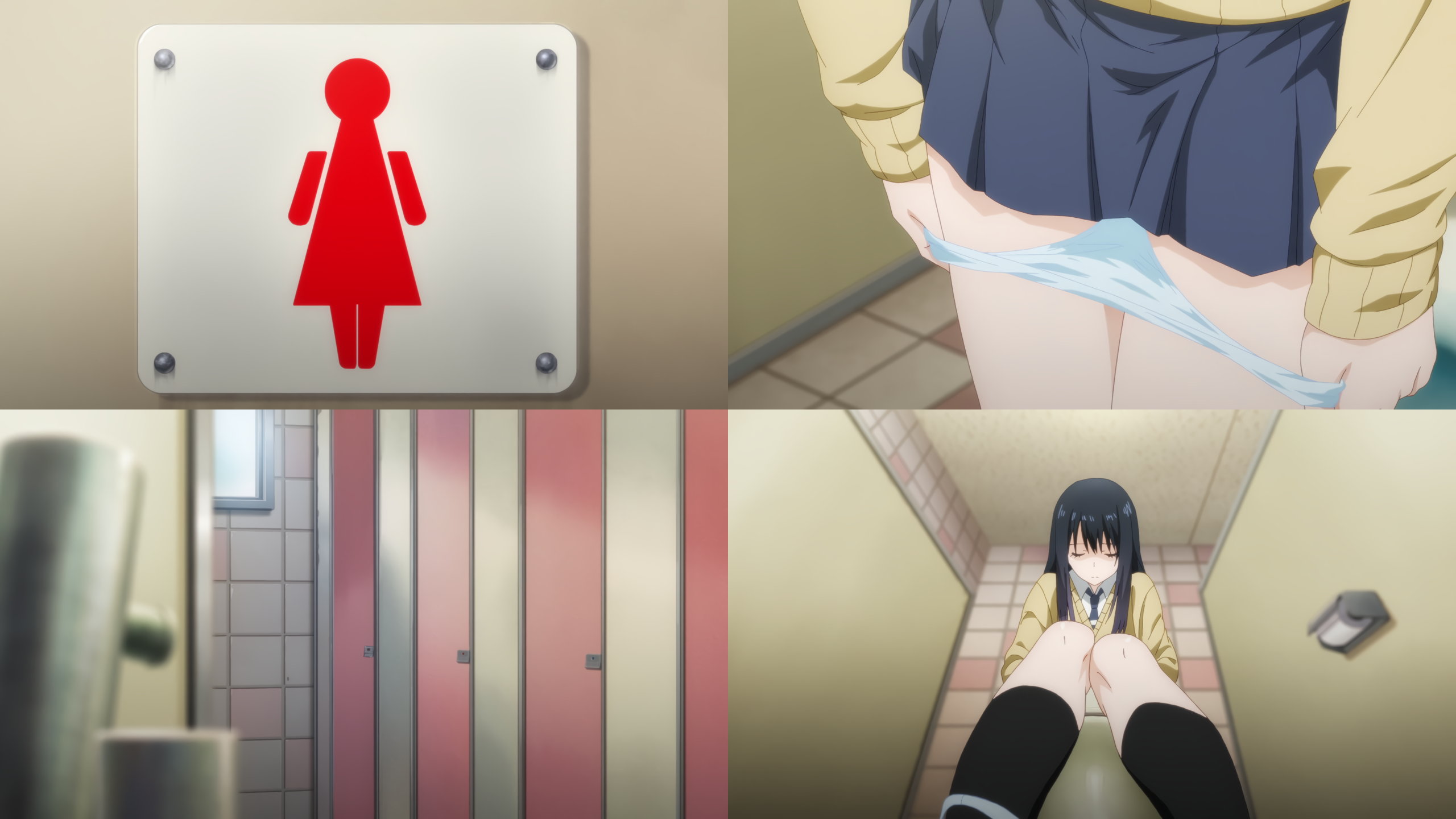 パンツを下ろして便器に座るみこ。