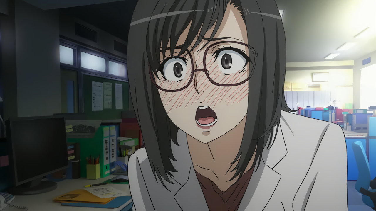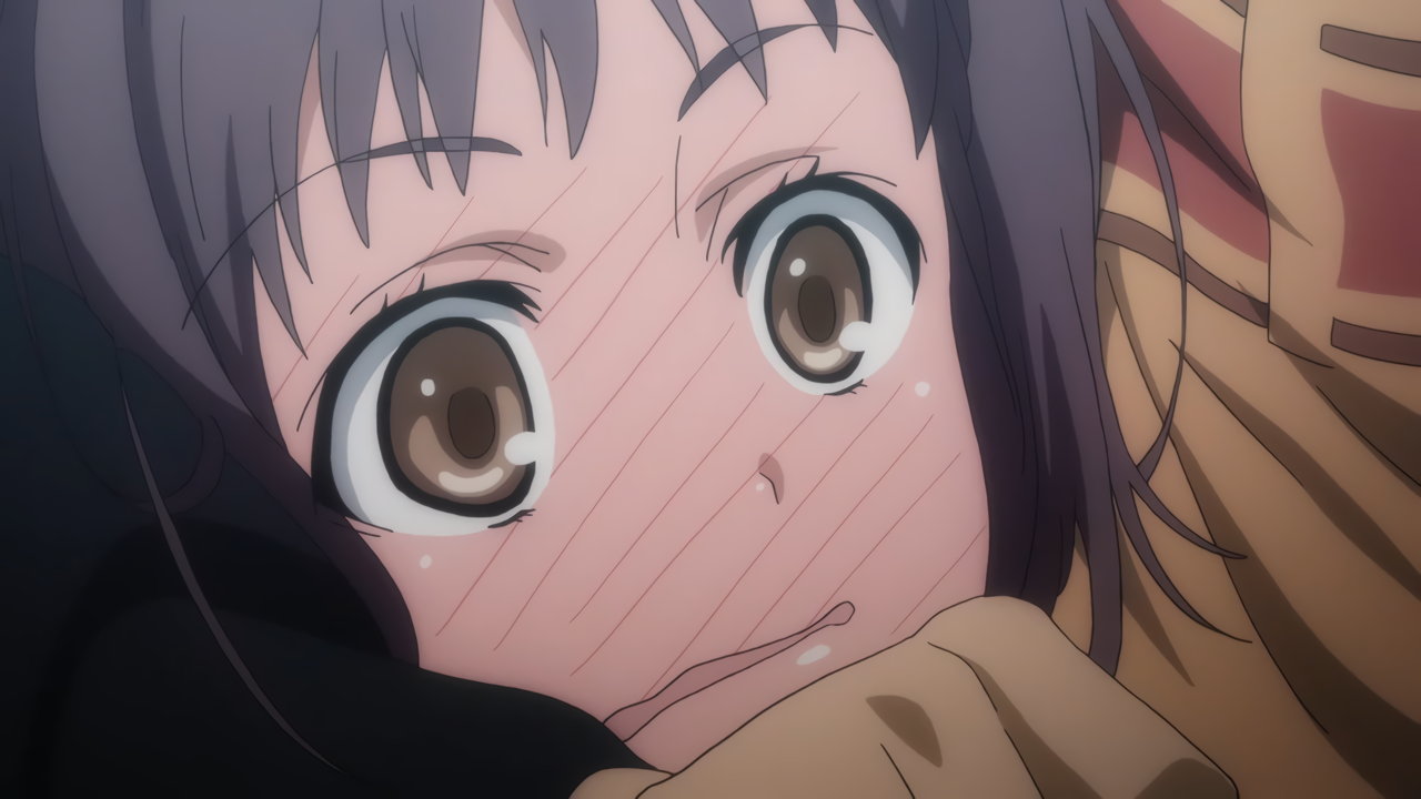 当麻に抱きしめられ、赤面する五和。