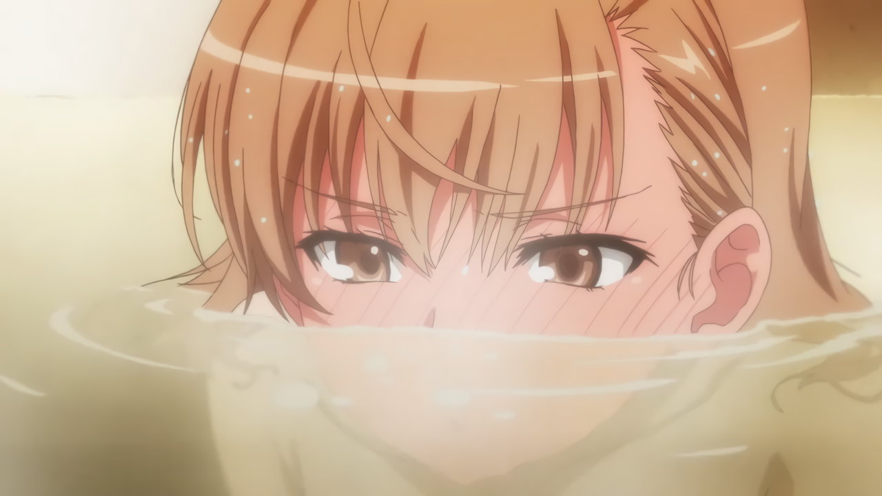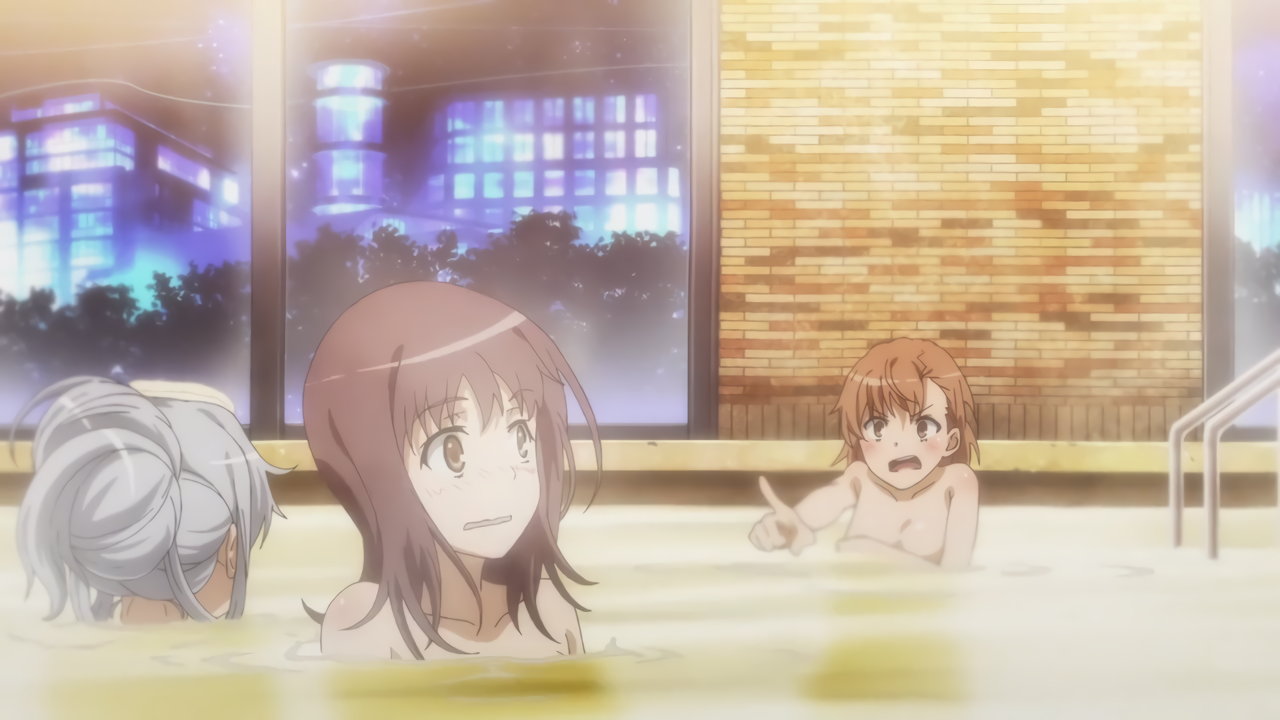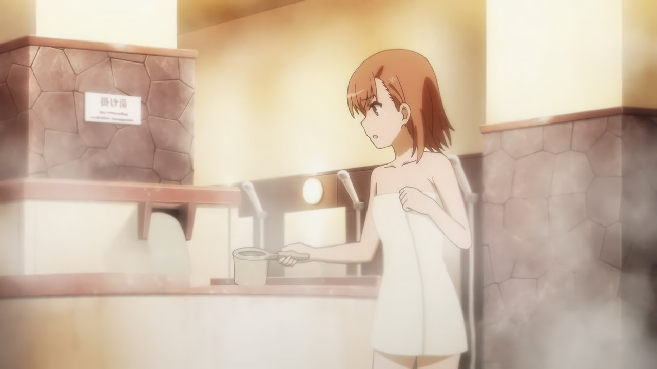 尻を見せつつ、湯船に入る美琴。