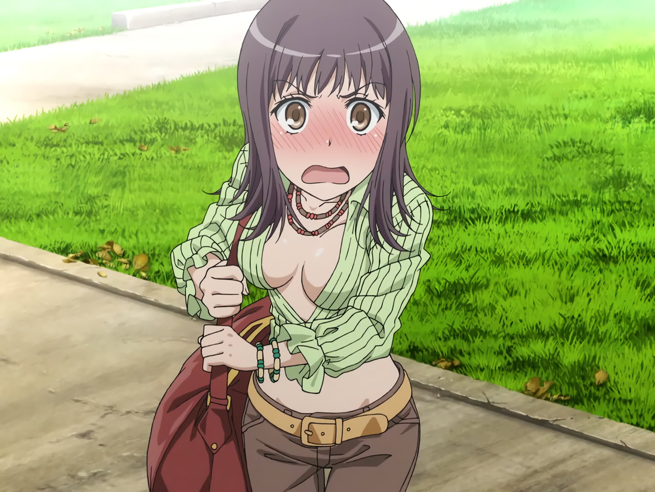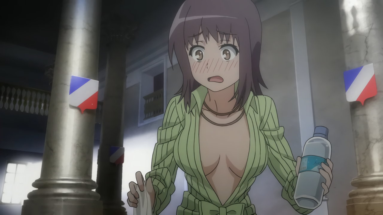 「ええ。パンフレットにミネラルウォーター、白いパ…ひゃうっ!」(羞恥赤面)