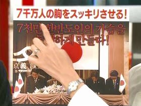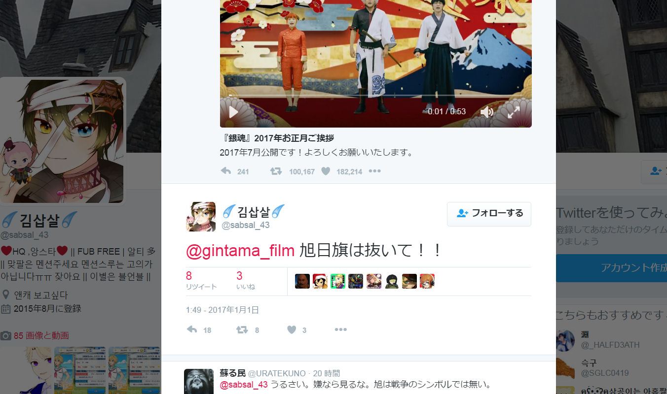 反日パフォーマンスで旧宗主国のご機嫌取り。銀魂以前にも、きゃりーぱみゅぱみゅの新年挨拶画像にも難癖をつけており、その年の韓国公演が中止となった。