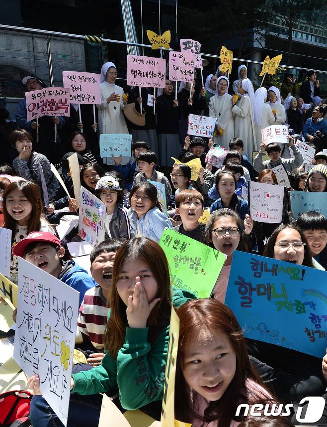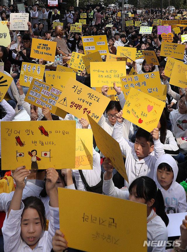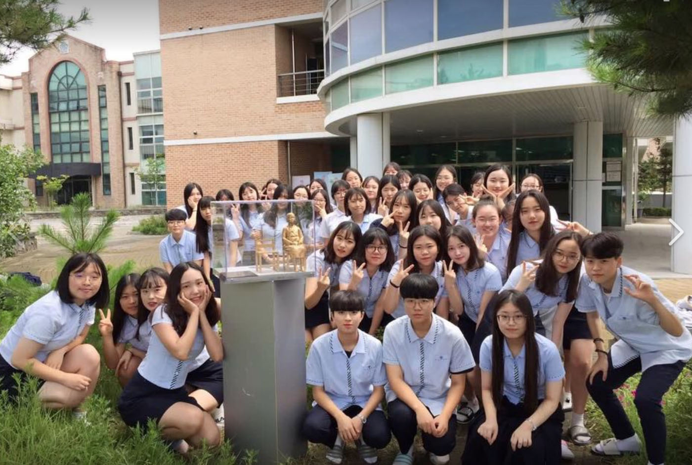 私たちは高校生です。私達は私の教室の中にありますが、屈辱的な過去、日韓合意を知っています。