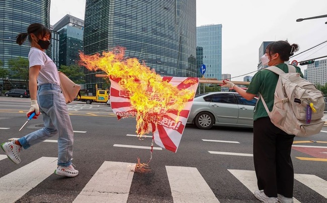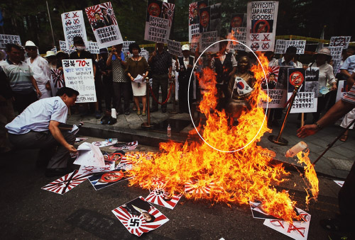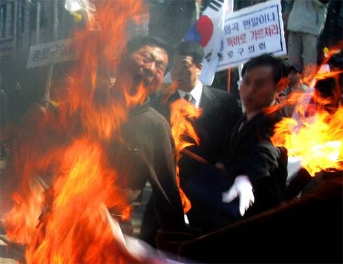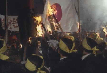 韓国人の願望を示してるね^_^1996年頃は、旭日旗ではなく日章旗を燃やしてた